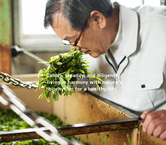 Gegründet im Jahr 1896 (Meiji 29) begann unsere Geschichte, als unser Gründer der ersten Generation, Sosuke Kamimizu, im Alter von nur 20 Jahren dem neu eingerichteten Ausbildungszentrum für Grüntee-Verarbeitung beitrat. Dort erlernte er die traditionellen Teeverarbeitungstechniken, insbesondere das Handrollen, und begann, Tee auf einem Hoiroc (Handrolltisch) herzustellen. Mit der Einführung der elektrischen Beleuchtung hielten auch Maschinen für die Teeverarbeitung Einzug – der Beginn unserer Modernisierung durch mechanisierte Produktion.