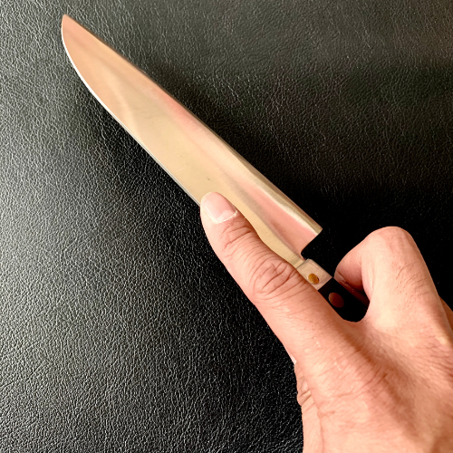 „Aogami Super“ ist ein von Hitachi Metals hergestellter Spezialstahl. Unter den vielen Stahlsorten, die von Hitachi produziert werden, gilt Aogami Super als die hochwertigste. Messer aus diesem Stahl zählen zu den härtesten und schärfsten, die in Japan gefertigt werden – mit einer Schnitthaltigkeit, die ihresgleichen sucht.